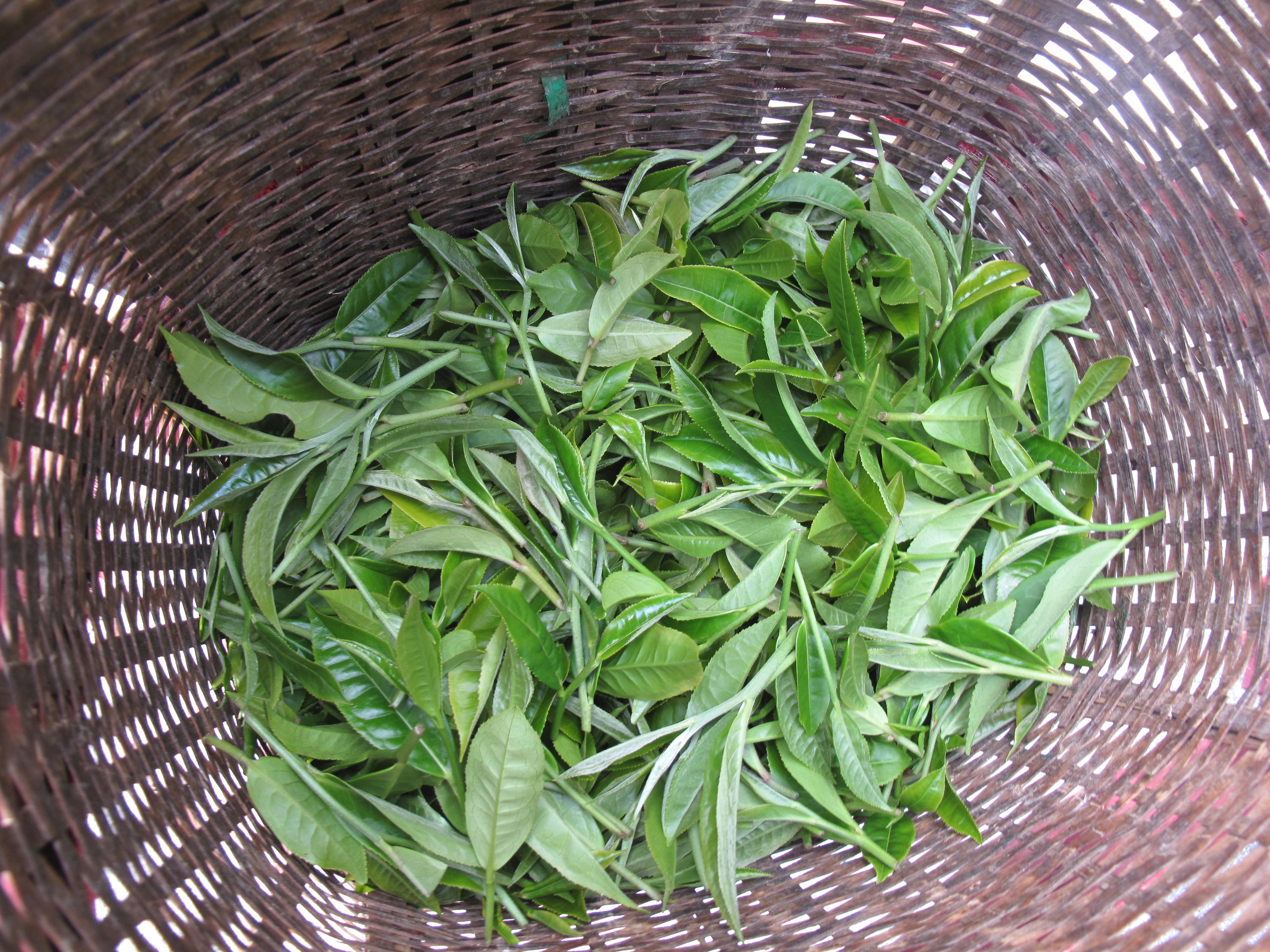 Tea leaves are picked early in the morning when the dew is still covering the leaf and they are often picked by female or younger hands due to the dexterity required. Depending on the tea, leaves plucked might be just the “tooth” or bud, two leaves and bud or three leaves and a bud depending on the season and/or the type of tea a farmer processes. The leaves need to be plucked at 180º to the growing of the stem to ensure the sap does not leach back into the pluckings causing any undesirable taste characteristics that will surface later.