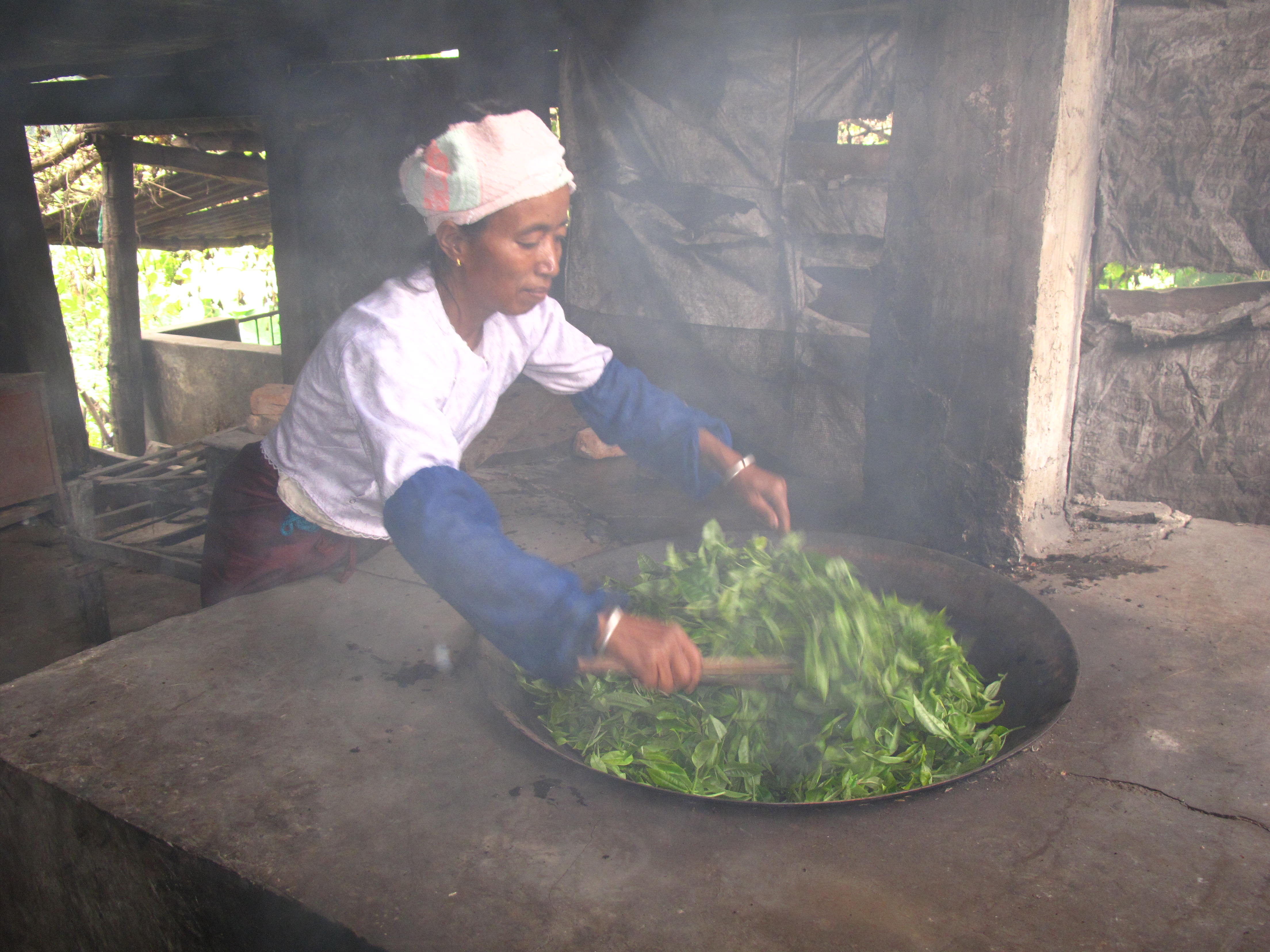 This process is commonly done using a large wok. The best tea makers often don’t use gloves. As tea is so sensitive to heat, they use human temperature control. If their hands are burning. So are the leaves! In producing tea with our partners, our unpractised hands have suffered burns on all too many digits over the years. When the leaves have been satisfactorily heated, the room smells sweet and fragrant. The leaves are then quickly pulled apart using all the fingers to ensure the leaves do not clump together.